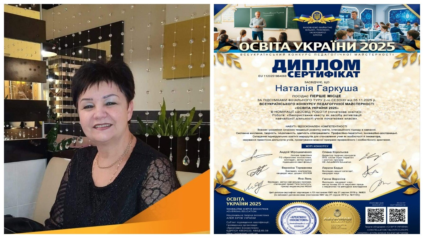 Наталія Василівна Гаркуша здобула І місце у фіналі Всеукраїнського конкурсу педагогічної майстерності «Освіта України 2025»! У номінації «Досвід роботи (початкова освіта)» її проєкт «Використання квесту …