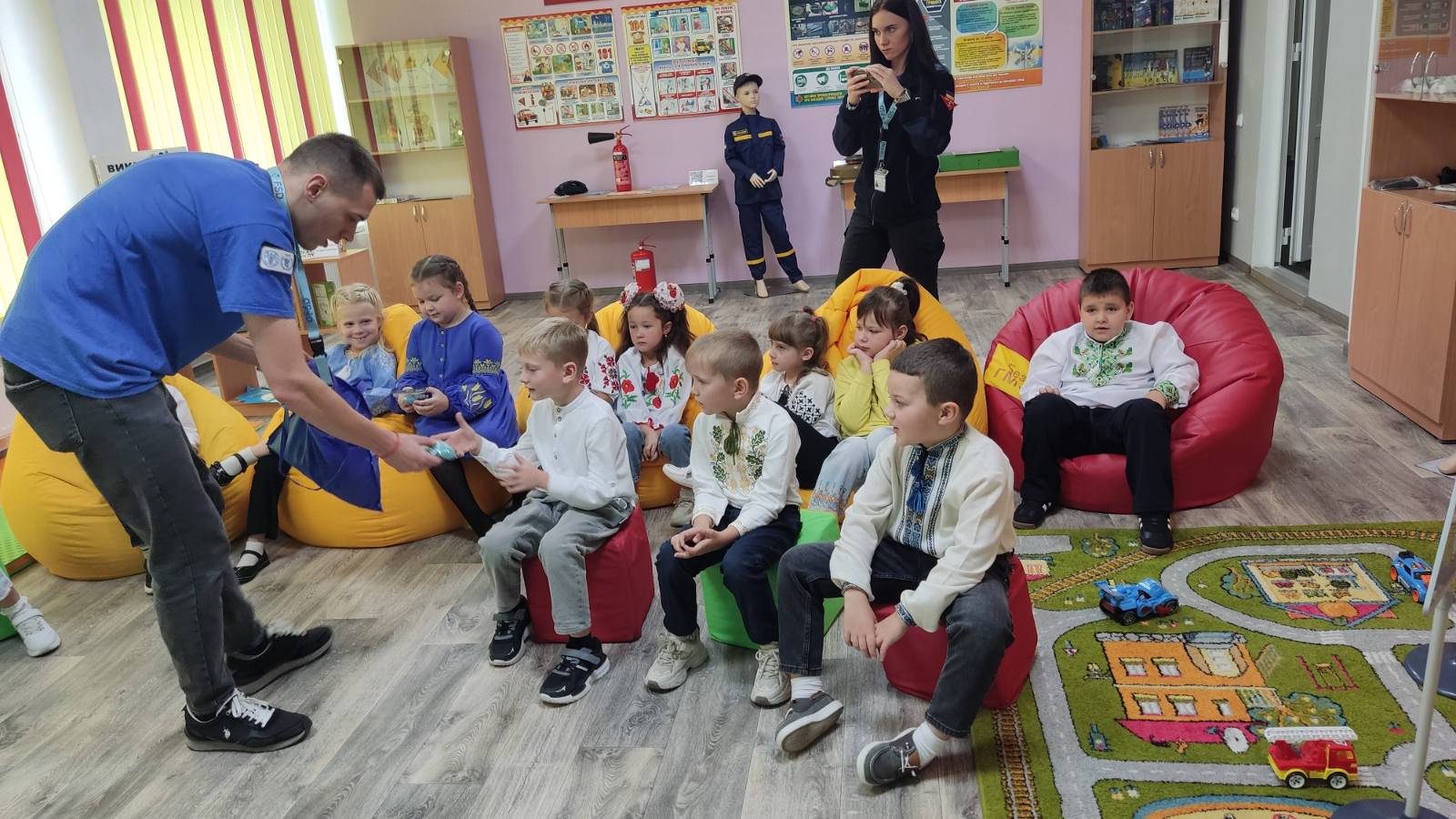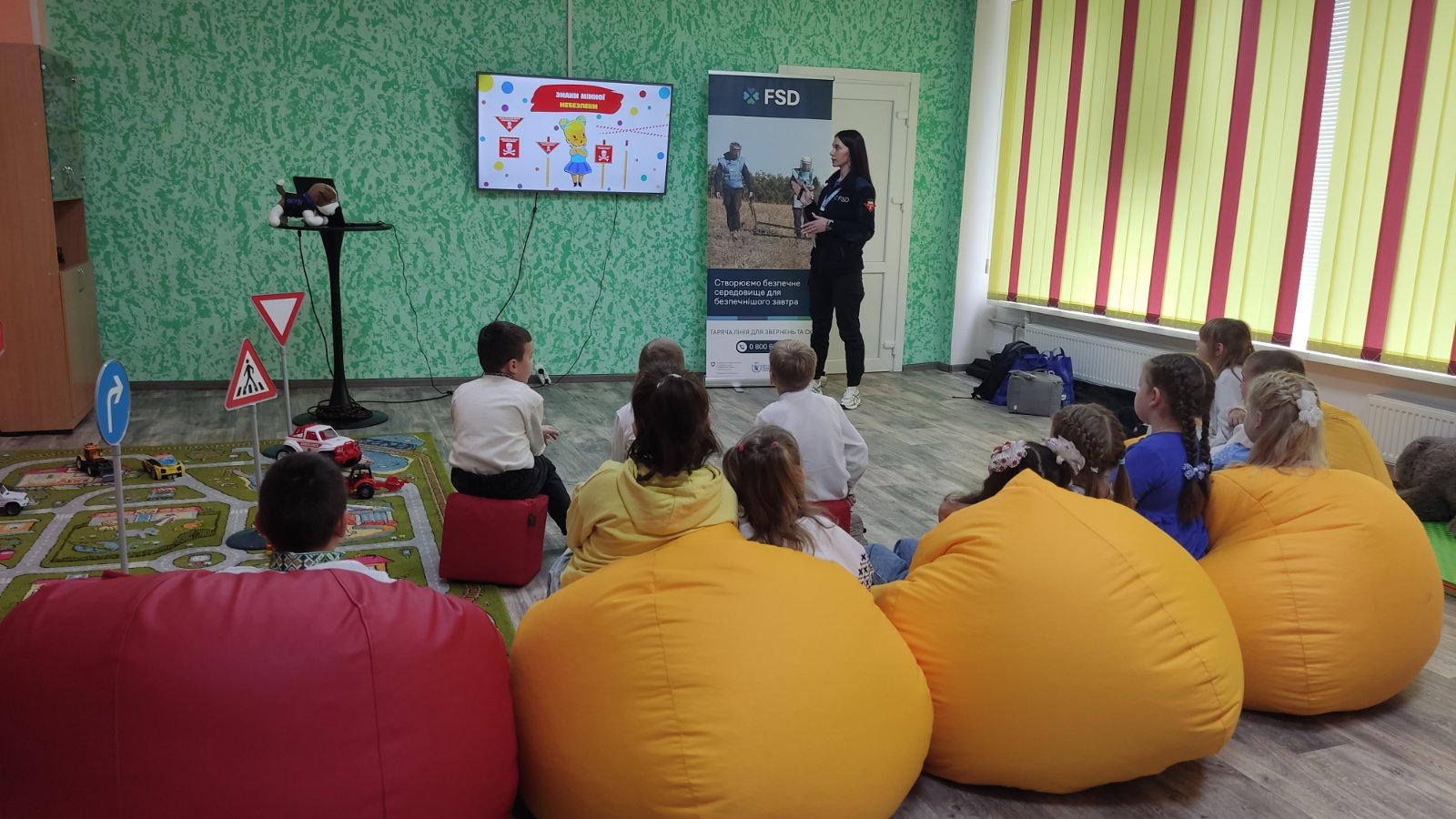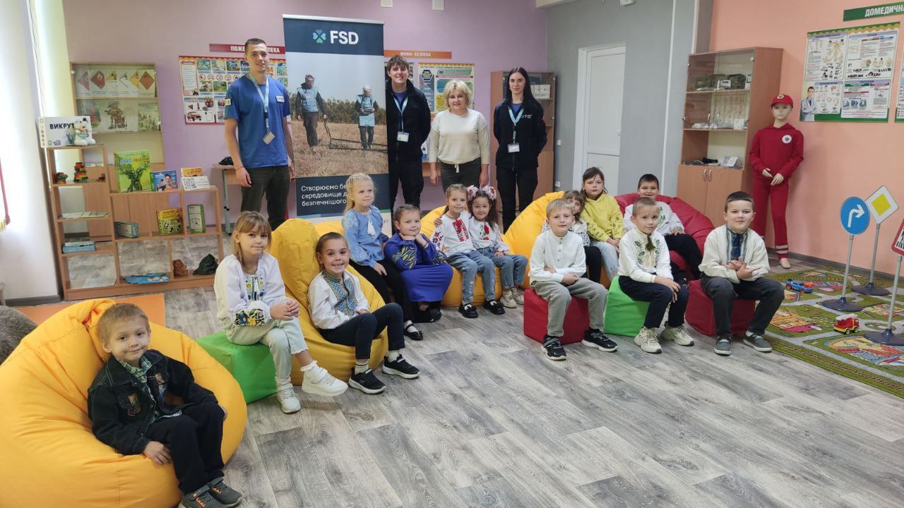 У першокласників – незвичаний урок. Малечу вчили правилам мінної небезпеки разом зі Швейцарським фондом з протимінної діяльності FSD.