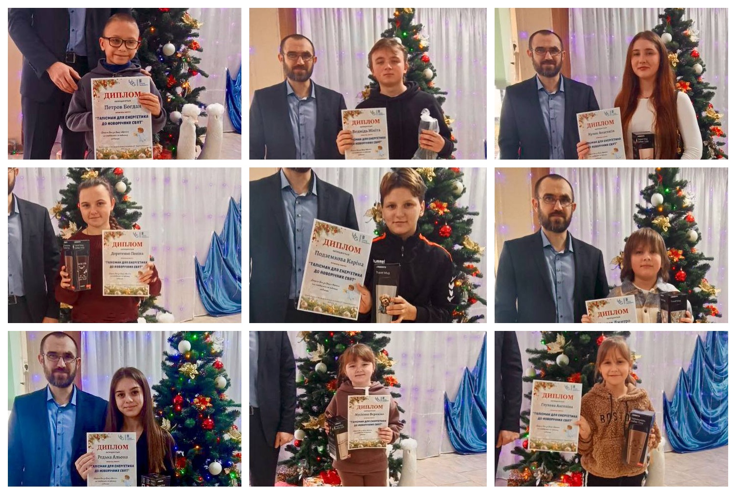 58 учнів Барвінківського ліцею №1 і його філії отримали подарунки та Дипломи переможців обласного конкурсу «Талісман для енергетика». У святковій атмосфері старший майстер Барвінківського РЕМу АТ «Харківобленерго» Андрій Вадимович Головко привітав учнів і вручив нагороди, зазначивши, що кожна робота була оригінальною і неповторною, тому й стала справжнім оберегом для наших героїв-енергетиків.