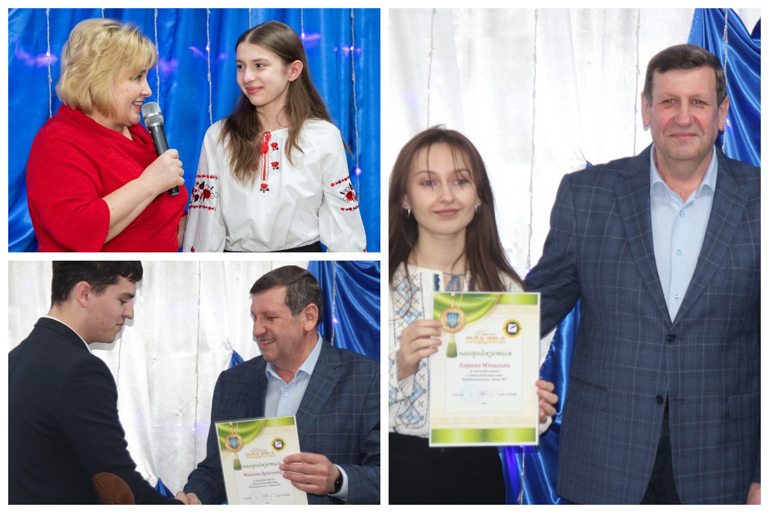 Директор ліцею Сергій Іванович Черний наголосив: «Ви – наша сила, наша гордість і наше майбутнє, в яке ми віримо!» Учні отримали Подяки за підняття престижу Барвінківського ліцею №1 та солодкі подарунки.