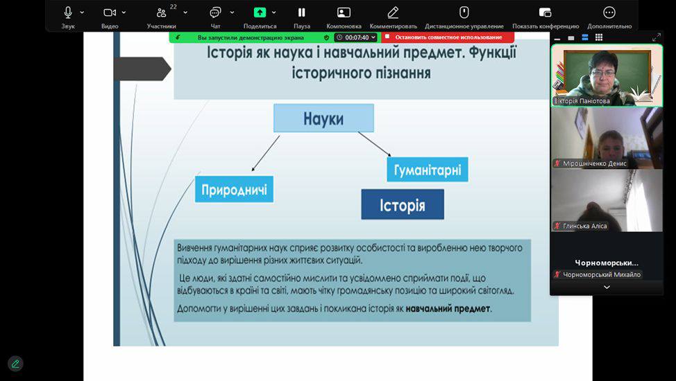 Для учнів 7-9 класів проведено уроки «Історія очима сучасності». Здобувачі освіти ознайомилися з виникненням цієї науки, з її першими творцями, з видатними українськими істориками та історичними контекстами української літератури.