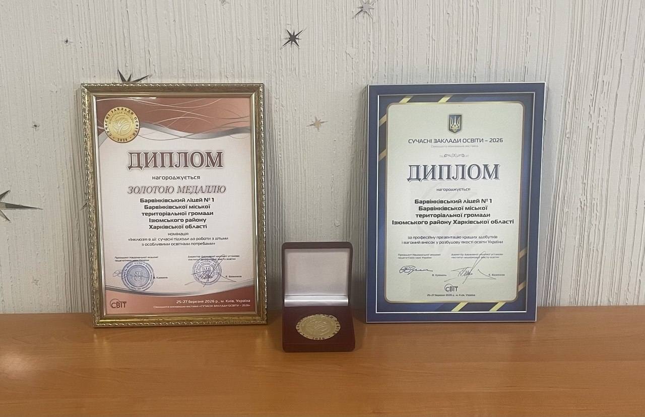 Наш ліцей здобув престижну нагороду на Міжнародній виставці «Сучасні заклади освіти-2026». У межах конкурсу ми представили досвід роботи за темою: «Інклюзивна освіта як простір стійкості: досвід прифронтового ліцею» (дистанційна форма навчання).